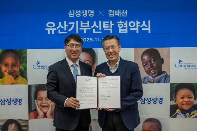 [이데일리 이윤정 기자] 국제어린이양육기구 컴패션은 지난달 삼성생명과 ‘보험·신탁 기반 유산기부 모델’의 확대와 기부 설계 전문화를 위한 업무협약(MOU)을 체결했다고 8일 밝혔다