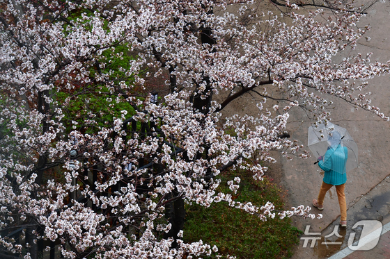 봄비가 내리는 지난달 31일 오전 경북 포항시청사 옆 산책로에서 우산을 든 시민이 걸어가고 있다. 2026.3.31 뉴스1 최창호 기자수요일인 1일은…