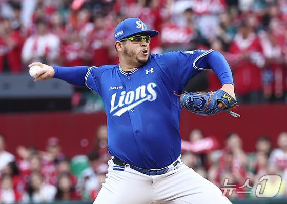일 오후 인천 SSG 랜더스필드에서 열린 프로야구 신한 SOL뱅크 KBO 준플레이오프 차전 삼성 라이온즈와 SSG 랜더스의 경기, 삼성 후라도가 회말 마…