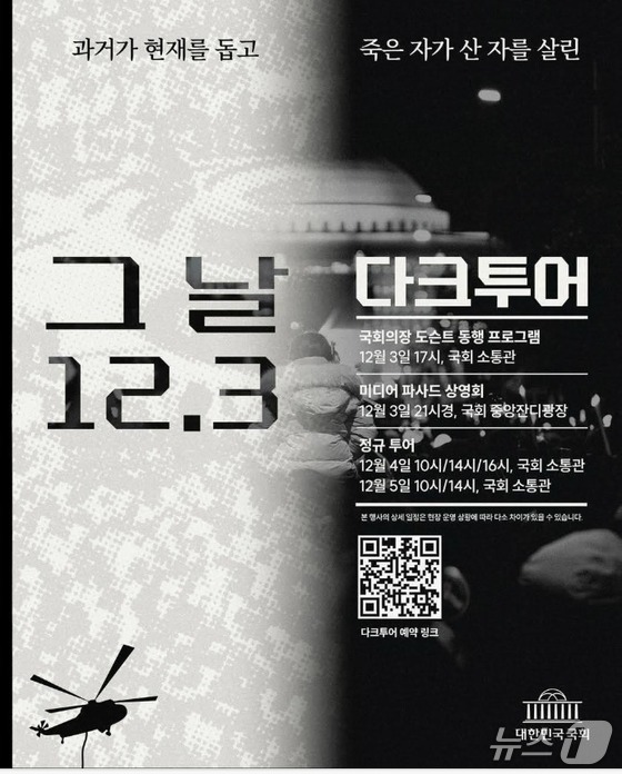 오는 12월 3일 오후 5시부터 5일까지 모두 6차례에 걸쳐 진행될 '계엄 다크투어' 포스터. 국회 사무처 제공 뉴스1한동훈 전 국…