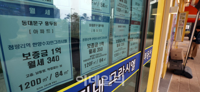 [이데일리 방인권 기자] 서울 아파트 평균 월세가 통계 작성 이래 최고치인 146만원까지 오르는 등 월세 부담이 급격하게 커지고 있는 가운데 11월 25일 서울 시내의 한 공인중개