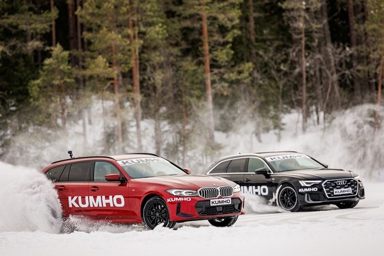 지난 2월 스웨덴 외스테르순드 서킷에서 개최된 '금호 윈터 드라이빙 익스피리언스'에서 금호타이어 겨울용 타이어 '윈터크래프트 WP52+'를 장착한 BMW, 아우디 차량이…