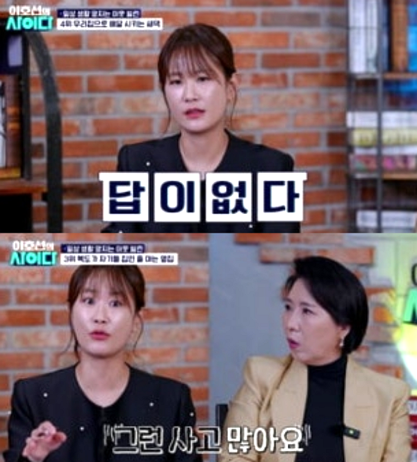 (MHN 김소영 기자)이호선과 김지민이 공동생활 공간에서 반복되는 민폐 행동에 분노하며 날 선 일침을 날렸다. 지난 17일 방송된 SBS Plus '이호선의 사이다' 8회 분이 가