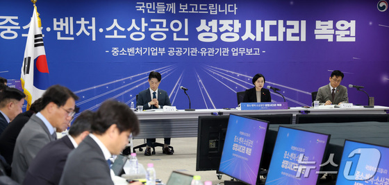 한성숙 중소벤처기업부 장관이 12일 세종시 정부컨벤션센터에서 열린 산하기관 업무보고에서 모두 발언을 하고 있다. 2026.1.12/뉴스1 News1 김기남 …
