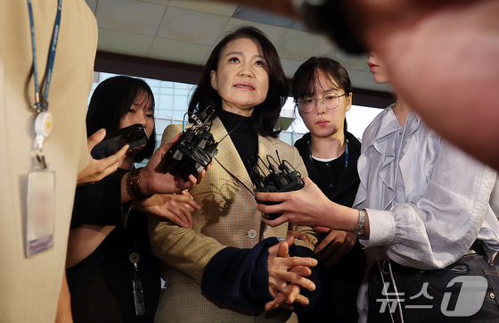 이진숙 전 방송통신위원장이 일 오후 서울 대치동 자택에서 경찰에게 체포된 뒤 영등포경찰서에서 입장을 밝히고 있다. ../뉴스 News 김진…