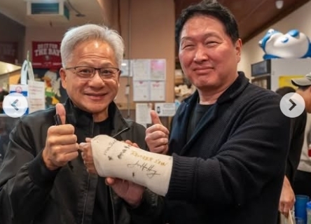 최태원 깁스에 젠슨 황 사인…"쾌차 기원" 빅테크 거물들 이름 빼곡