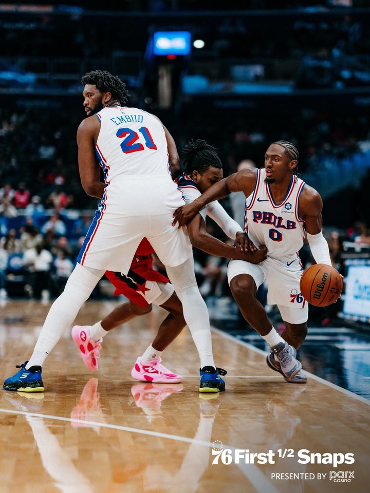 (왼쪽부터) 조엘 엠비드, 타이리스 맥시 (MHN 조건웅 인턴기자) 필라델피아 세븐티식서스가 조엘 엠비드의 제한된 출전 속에서도 워싱턴 위저즈를 연장 접전 끝에 꺾고 시즌 4연승을