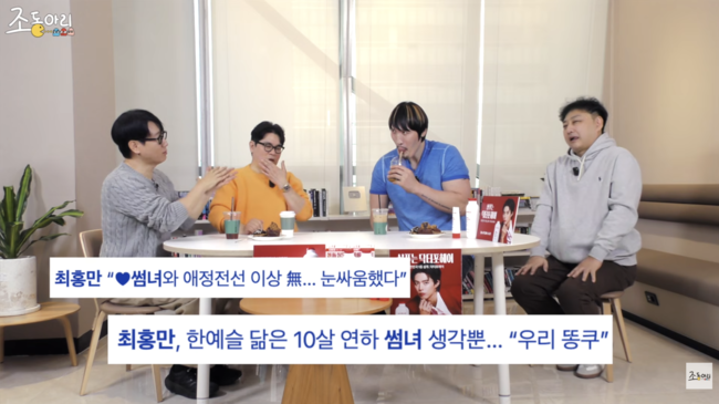 [OSEN=김채연 기자] 방송인 최홍만이 10살 연하 썸녀와 결별했다고 밝혔다. 28일 유튜브 채널 ‘조동아리’에는 ‘유행어까지 장착한 세계유일 귀염뽀짝 거인 뉴 최홍만’이라는 제