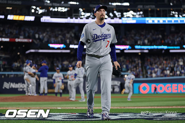 [OSEN=홍지수 기자] 미국 메이저리그 LA 다저스 선발투수 블레이크 스넬이 웃지 못하고 마운드에서 내려왔다. 스넬은 25일(이하 한국시간) 캐나다 온타리오 토론토 로저스센터에서