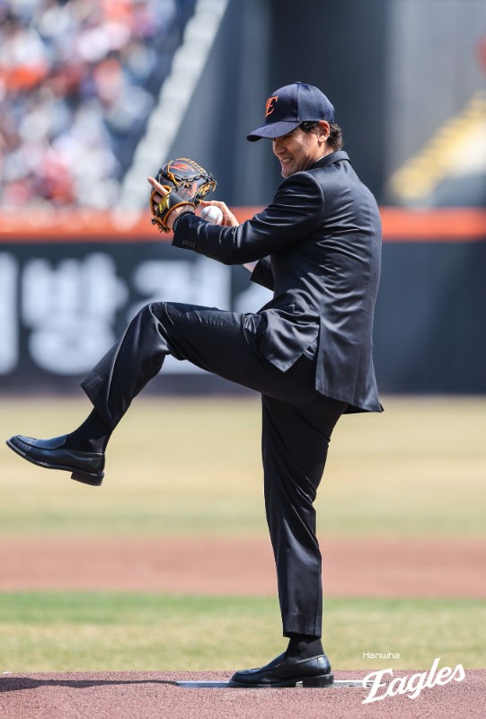 (MHN 권수연 기자) '코리안 특급' 한국 야구 레전드 출신 박찬호가 검은 정장을 입고 시구를 한 후 비하인드를 전했다. 박찬호는 지난 28일 오후 대전 한화생명볼파크에서 열린