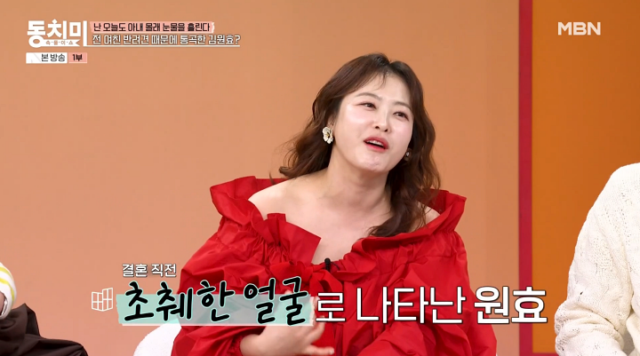심진화가 김원효의 눈물에 대해 언급했다. 28일 방송된 MBN '속풀이쇼 동치미'는 '난 오늘도 아내 몰래 눈물을 흘린다'는 주제로 이야기를 나눴다. 이날 심진화는 "(김원효와)