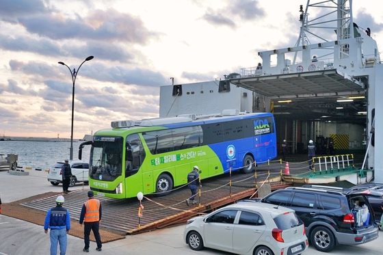 롯데웰푸드 닥터자일리톨버스가 울릉도 사동항에서 일 입도하고 있다.롯데웰푸드 제공롯데웰푸드는 ‘자일리톨껌' 사회공…