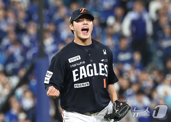 일 대구삼성라이온즈파크에서 열린 신한 SOL뱅크 KBO 포스트시즌 플레이오프 차전 한화 이글스와 삼성 라이온즈의 경기, 한화 문동주가 회말 사 루 상…