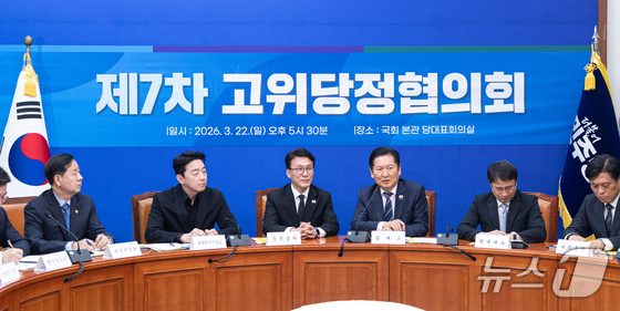 22일 오후 서울 여의도 국회에서 열린 '제7차 고위당정협의회'. 2026.3.22 뉴스1 이승배 기자이재명 대통령표 '전쟁 추경'이 25조 원 규모…