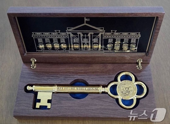 도널드 트럼프 대통령이 이재명 대통령에게 선물한 '백악관 황금열쇠'.강훈식 대통령비서실장 페이스북 News1 한재준 기자도널드 트럼…
