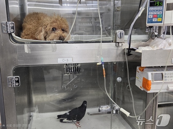 지난 5일 서울 송파구 한 동물병원 입원장에 비둘기가 입원해 있다. 뉴스1 한송아 기자지난 5일 서울 송파구의 한 동물병원 입원실. 입원 치료를 받는…