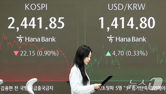 계엄 사태 후인 지난해 12월 5일 서울 중구 하나은행 본점의 증시 종가 표시. 2024.12.5/뉴스1 News1 김성진 기자지난해 12월 3일, …