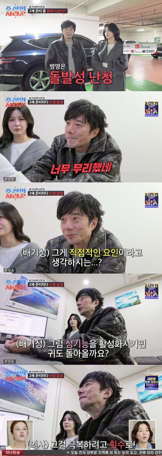 ‘이은비♥’ 배기성, 2세 준비 중 돌발성 난청 “돌연사 할 수도 있을 듯”(조선의 사랑꾼)[종합]