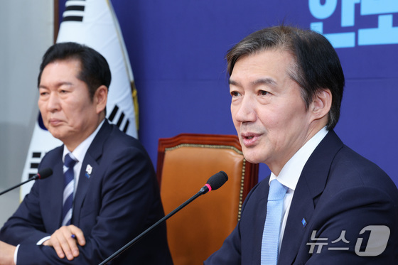 조국 조국혁신당 대표가 26일 서울 여의도 국회에서 정청래 더불어민주당 대표를 예방하고 있다. 2025.11.26/뉴스1 News1 신웅수 기자조국 …