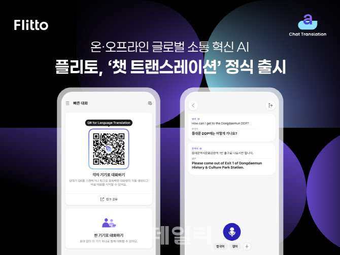 [이데일리 이소현 기자] 인공지능(AI) 데이터 및 솔루션 전문 기업 플리토(300080)는 글로벌 소통 환경을 위한 실시간 AI 통번역 솔루션 ‘챗 트랜스레이션(Chat Tran