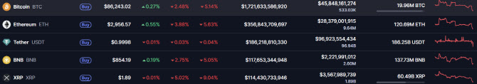 [이데일리 강민구 기자] 비트코인 가격이 하락해 한때 8만 6000달러 밑에서 거래됐다. 일본은행의 기준금리 인상 우려 등이 작용한 결과로 풀이된다. 글로벌 가상자산 시황중계 사이