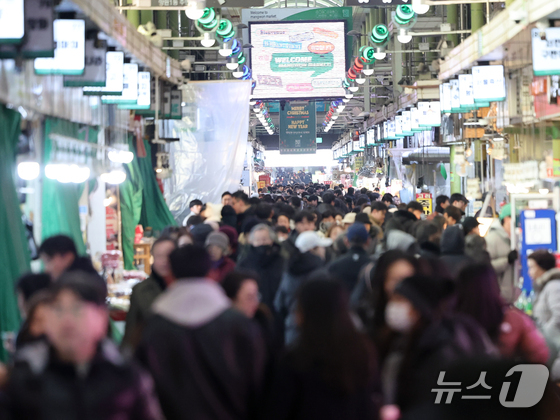 민족 최대명절 설을 앞둔 1일 서울 마포구 망원시장에서 시민들이 장을 보고 있다. 2026.2.1/뉴스1 News1 황기선 기자새해 첫 달 소비자물가…
