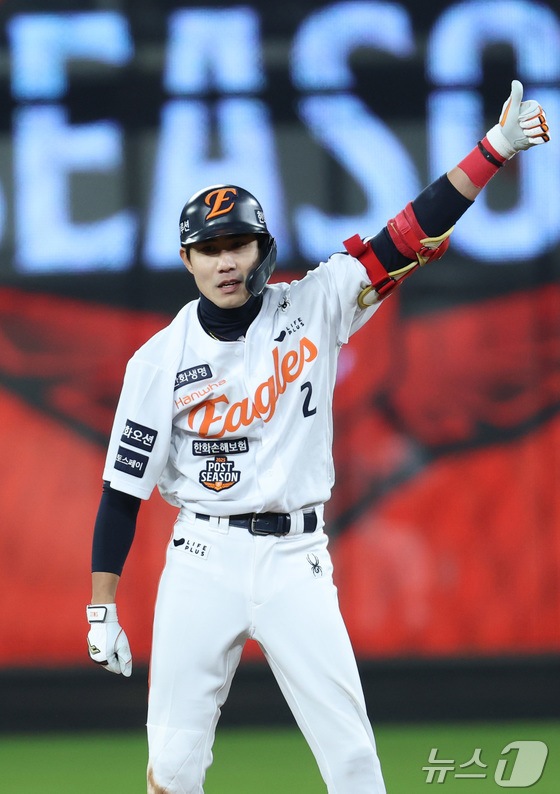 일 대전 한화생명볼파크 열린 프로야구 신한 SOL뱅크 KBO 한국시리즈 차전 LG 트윈스와 한화 이글스의 경기에서 회말 한화 심우준이 사 만루에서 역전…