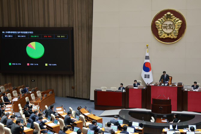 [이데일리 하지나 기자] 배당소득 분리과세 50억원 초과 구간을 신설하고 최고 세율 30%를 적용하는 조세특례제한법이 2일 국회 본회의를 통과했다. 국회는 이날 본회의를 열어 이