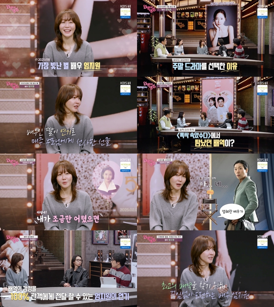 "극한의 진심 보여드리고 싶어" 엄지원의 담백한 연기 철학이 진한 여운을 남겼다. 24일 방송된 KBS 1TV 무비 토크쇼 '인생이 영화'에서는 연기대상 수상 이후에도 다가올 최고