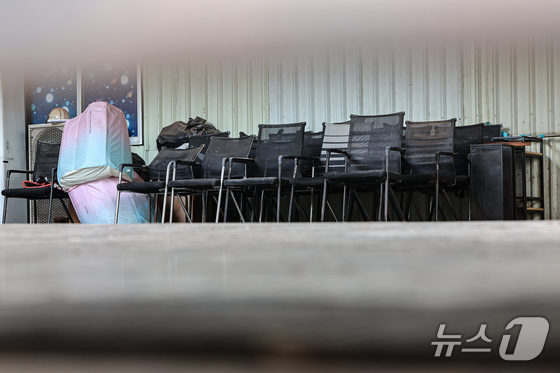 일현지시간 캄보디아 프놈펜 외곽 온라인스캠범죄가 이뤄졌던 건물에 의자들이 남아있다. 현지 언론에 따르면 이곳에서 지난달 일 캄보디아 당국의 단속…