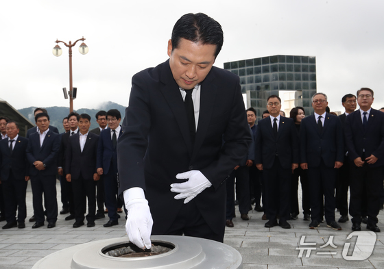 장동혁 국민의힘 대표가 일 오전 경남 창원 마산회원구 국립·민주묘지를 참배하고 있다. ../뉴스 News 윤일지 기자장동혁…