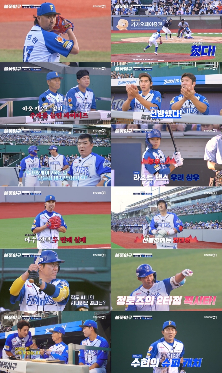 불꽃 파이터즈가 유신고의 거센 공세를 뚫고 2:3, 1점 차 리드를 잡았다. 어제(1일) 오후 8시 스튜디오C1 공식 유튜브 채널을 통해 공개된 야구 예능 프로그램 ‘불꽃야구’ 3