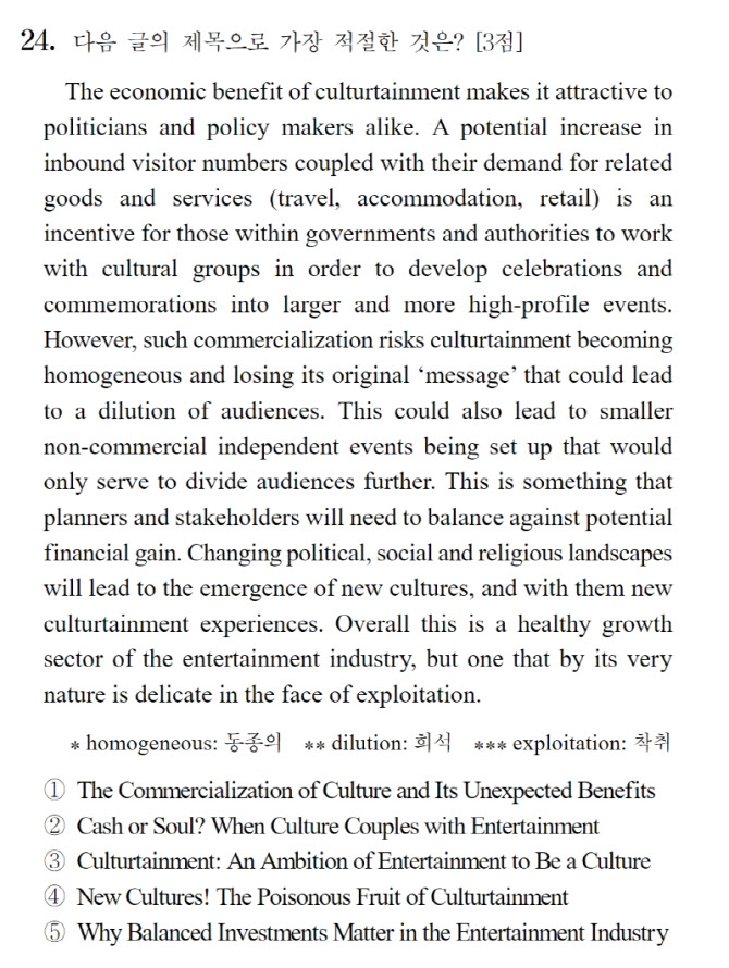 수능 이의제기 6백건중 4백건..영어 24번 정답은