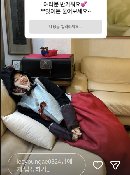 [OSEN=김수형 기자] 배우 이영애가 사랑스러운 일상 비주얼과 함께 팬미팅 가능성을 언급하며 뜨거운 반응을 얻고 있다. 이영애는 최근 SNS를 통해 팬들과 Q&A 시간을 진행했다