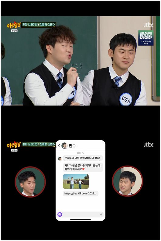<리뷰 : 방송 시청 후 작성된 리뷰 기사입니다.> [OSEN=오세진 기자] ‘아는 형님’ 피식대학 김민수와 정재형이 플라이투더스카이(이하 '플투')의 명곡 '씨 오브 러브'의 패