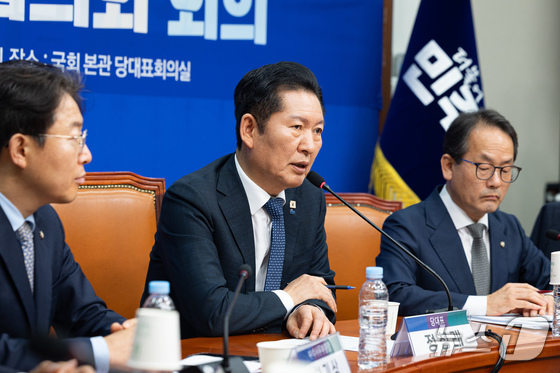 정청래 더불어민주당 대표가 16일 서울 여의도 국회에서 열린 시·도당위원장협의회 회의에서 모두 발언을 하고 있다. 2026.3.16 뉴스1 유승관 기자…