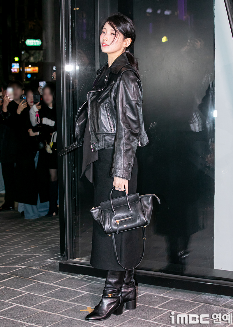 배우 수지가 17일 오후 서울 청담동에 위치한 한 플래그십 스토어에서 열린 패션 브랜드 연말 맞이 행사에 참석해 입장하고 있다. 이날 수지는 포니테일 스타일의 롱 웨이브 헤어에 가