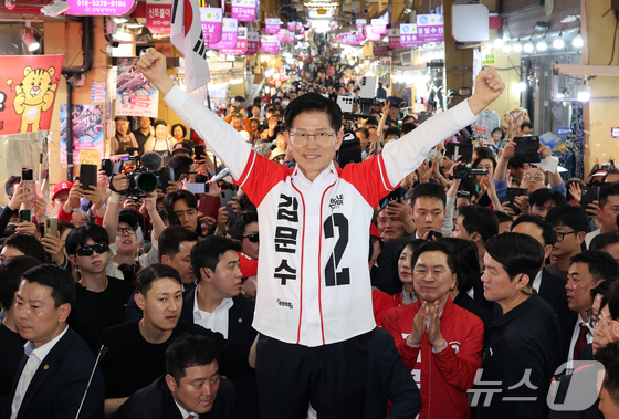 김문수 국민의힘 대통령 후보가 선거운동 이틀째를 맞은 13일 울산 남구신정시장을 찾아 지지를 호소하고 있다. 공동취재 2025.5.13/뉴스1 &cop…