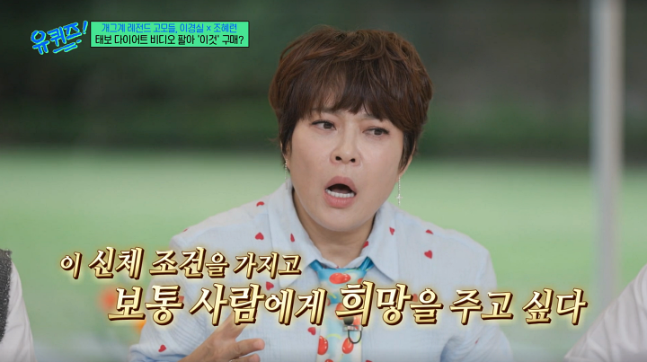 조혜련이 지석진을 신뢰하지 않는다고 밝혔다. 15일 방송된 tvN '유퀴즈 온 더 블럭'에는 코미디언 이경실, 조혜련이 출연했다. 과거 다이어트 태보 비디오를 냈던 조혜련은 "당시
