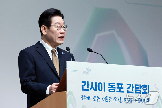이재명 대통령이 14일 일본 나라현의 한 호텔에서 열린 간사이 동포 간담회에서 인사말을 하고 있다. 2026.1.14/뉴스1 News1 이재명 기자이…