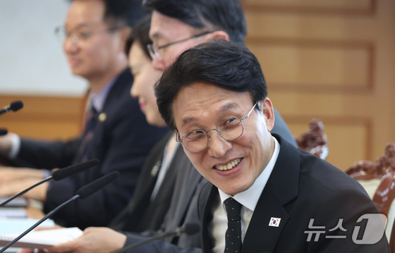 김민석 국무총리가 15일 오후 서울 종로구 세종대로 정부서울청사에서 열린 제28차 장애인정책조정위원회에서 참석자들과 인사를 하고 있다. 이날 참석자들은 장애인 거주시설 …