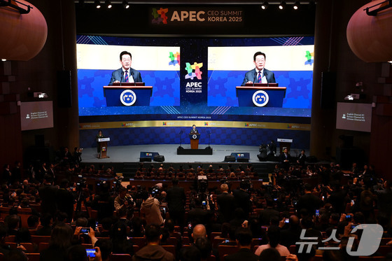 이재명 대통령이 일 오전 경북 경주 예술의전당 화랑홀에서 열린 아시아태평양경제협력체 최고경영자 서밋APEC CEO SUMMIT에서 특별 기…
