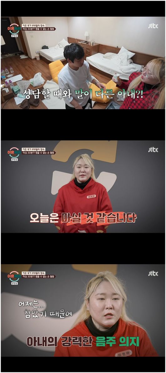 <리뷰 : 방송 시청 후 작성된 리뷰 기사입니다.> [OSEN=오세진 기자] ‘이혼숙려캠프’ 외도 부부의 아내가 알코올 의존증 치료를 약속했으나, 이내 숙소로 돌아와 술을 마시지
