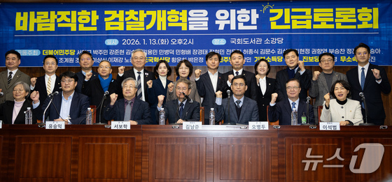 한동훈 전 국민의힘 대표가 전날14일 서울 여의도 국회 소통관에 도착하며 지지자들의 응원을 받고 있다. 공동취재 2026.1.14/뉴…