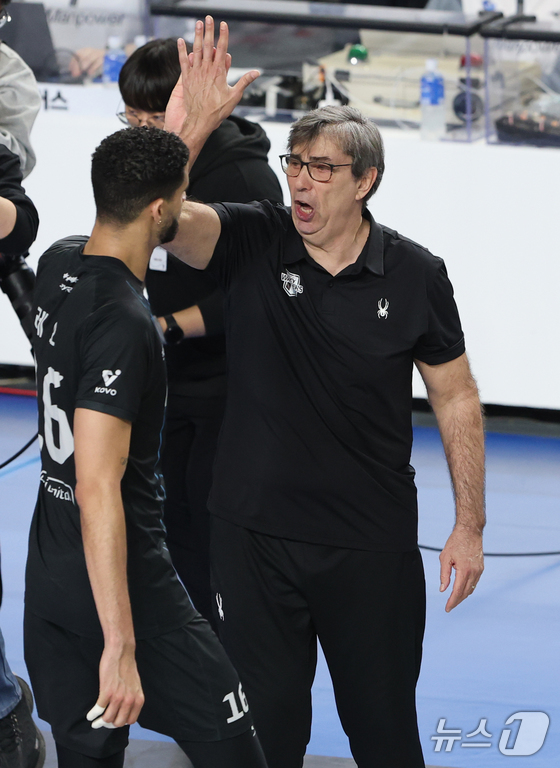 8일 충남 천안 유관순체육관에서 열린 프로배구 2025-2026 V리그 남자부 챔피언 결정전 4차전 대한항공과 현대캐피탈의 경기에서 승리한 현대캐피탈 필립블랑 감독이 레…