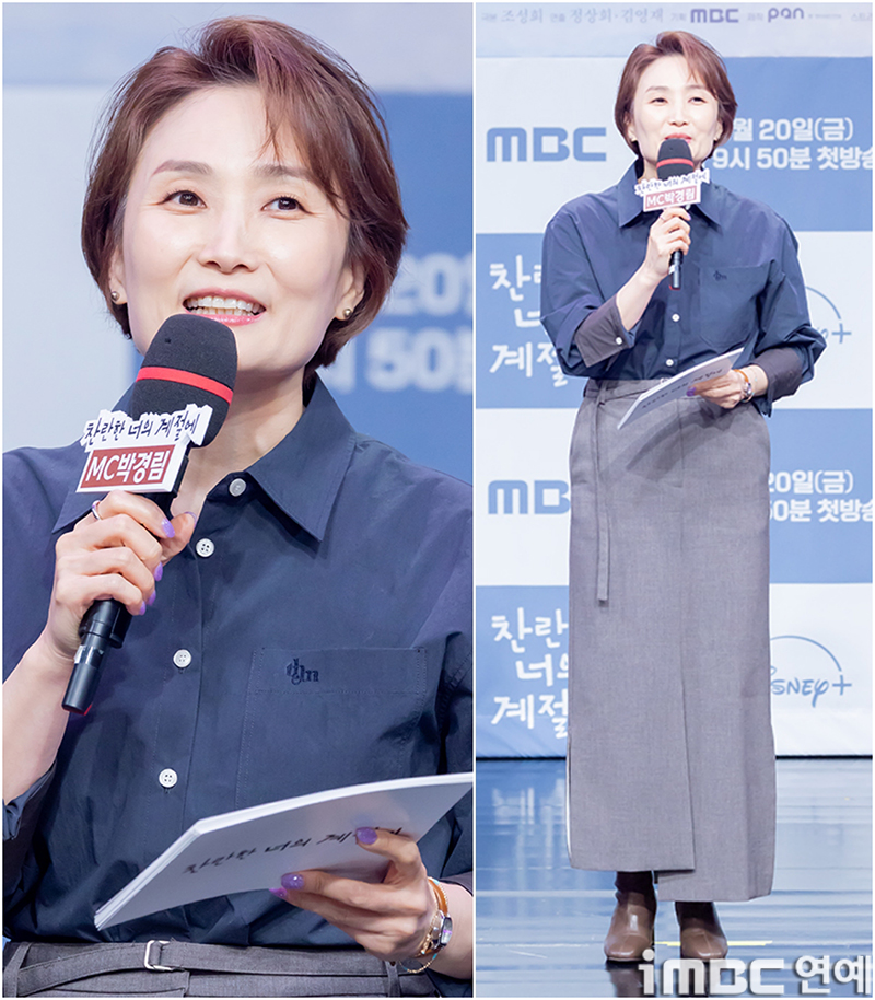 MC 박경림이 19일 오후 서울 상암MBC 신사옥 골든마우스홀에서 열린 MBC 새 금토드라마 ‘찬란한 너의 계절에’ 제작발표회에 참석해 진행을 하고 있다. ‘찬란한 너의 계절에’는