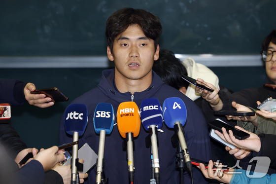 대한민국 야구대표팀 박영현이 사이판 전지훈련을 마치고 21일 오후 인천국제공항을 통해 귀국해 취재진과 인터뷰를 하고 있다. 2026.1.21/뉴스1 News…