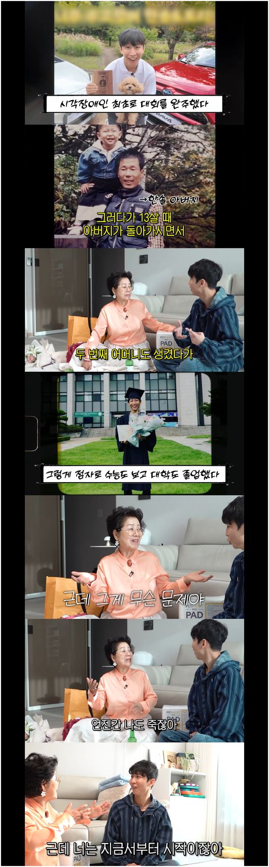 <리뷰 : 방송 시청 후 작성된 리뷰 기사입니다.> [OSEN=오세진 기자] ‘순풍 선우용여’ 배우 선우용여가 시각장애인 유튜버 한솔에게 응원과 공감의 메시지를 건넸다. 19일 배