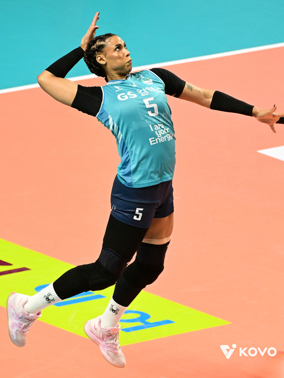 GS칼텍스 지젤 실바. KOVO 제공여자 프로배구 GS칼텍스가 흥국생명을 누르고 플레이오프PO에 진출했다.GS칼텍스는 24일 …