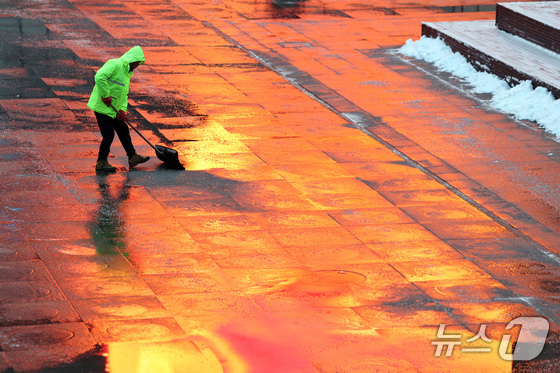 2일 오전 서울 광화문광장에서 시설 관계가 밤새 내린 눈을 치우고 있다. 2026.2.2/뉴스1 News1 구윤성 기자간밤 서울 전역에 많은 눈이 내…